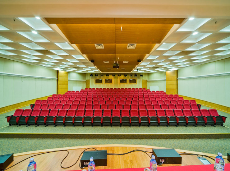Полные света интерьеры зала оформлены в теплой бежево-золотой гамме. и украшены великолепными зеркальными панно, гардинами и сверкающими люстрами. В зале комфортно могут разместиться до 40 человек. Он идеально подходит для празднования свадеб, дней рождений и презентаций.