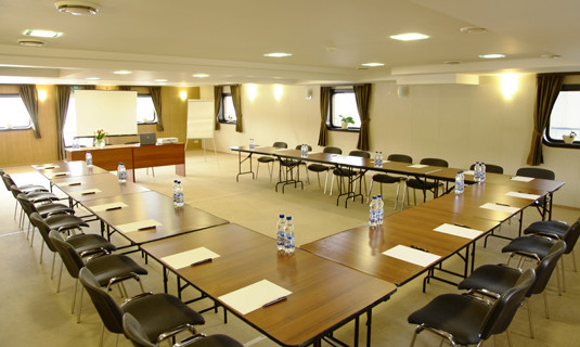 Светлый и просторный конференц-зал отеля, с большими окнами и комфортной мобильной мебелью идеально подходит для проведения семинаров, тренингов и презентаций. Большая площадь зала и удобная мебель позволяют использовать его как для крупных конференций, так и для небольших совещаний за круглым столом.