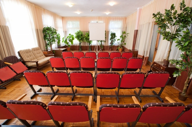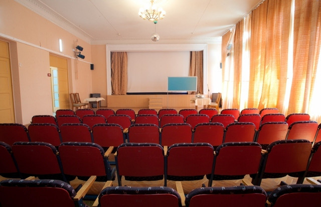 Вместимость 160 человек, оборудован сценой, широкоформатным экраном 4*3,5 м2, смежным закрытым холлом и открытой террасой для проведения кофе-брейков.