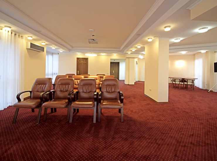Конференц-зал вместимостью до 40 персон предназначен для проведения мероприятий различного уровня: конференций, семинаров, тренингов, официальных презентаций, деловых встреч, переговоров.