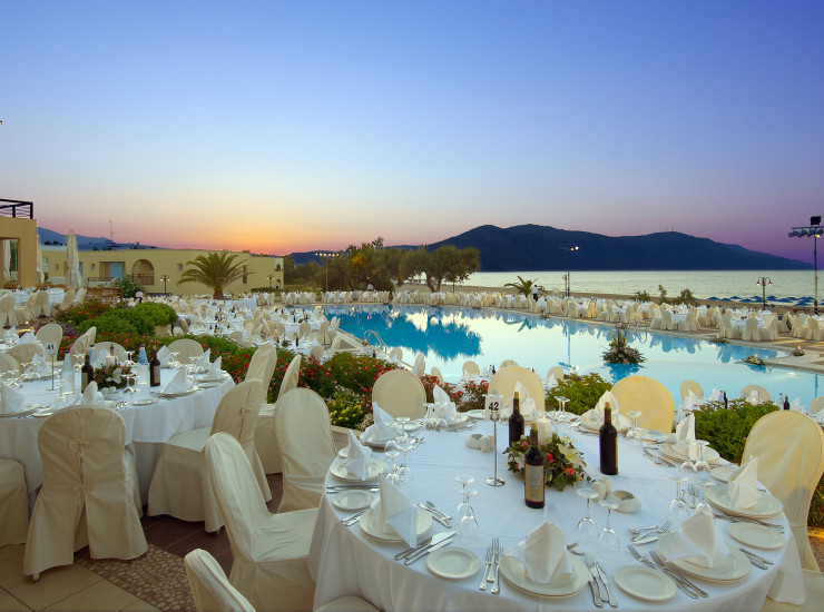 Центральный ресторан Kronos расположен на втором этаже центрального здания с великолепными видами на бассейн и Критское море.