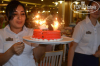 Младшему в отеле исполнилось 8 лет. Бесплатно никто не поздравил- оплатила торт 16$ и его вынесли на ужине со свечами, бенгальскими огнями и песнями. Анимация за программу поздравительную взяли 80 $. Его вывели на сцену, пускали фейрверки, шарики, нарисовали плакат, подарили диск, футболку, грамоту, медаль. Ребенок был в восторге.