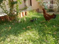 Территория большая есть где погулять вечерами.Всё цветет и аромат стоит головокружительный.Кругом гуляют куры с цыплятами,индюки,не раз видели ящериц.