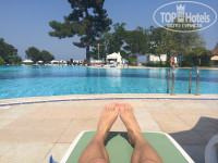 Добрый день! Начну по порядку. Выбирали с сестрой тур в Турцию с 9 по 15 июля. Читали много отзывов, смотрели фотографии и т.д. Я сразу хочу сказать, что я не отельный работник и я пишу этот отзыв от души, то, что думаю. И в Турции я уже не первый раз, да и вообще по миру уже поездил и есть с чем сравнить. Мы сами живем в г. Саратов, смотрели путевку с вылетом из Саратова, прямым рейсом, дабы не ездить через Москву. Нашли. Изначально нам посоветовали в турагенстве отель Queen Elizabeth, мы посмотрели, да вроде и фотографии ничего и отзывы 50/50, купили путевки, вышло 60 000 на двоих. Успокоились. Потом благо мне позвонила знакомая девчонка, которая там отдыхала и сказала что если не хотите испортить себе отдых, то меняйте отель, т.к. там оч ужасно. В итоге посмотрели другие варианты, остановились на Ma Biche Hotel Thalasso, правда путевка уже стоила 80 000 на двоих. Купили. Вылет из Саратова у нас был ранний, в 4-15, соответственно в Анталию мы прилетели в 6-15 (разница с мск временем -1 час), пока всех дождались, пока доехали, время уже было около 8 по местному. Нас тут же встретили на ресепшн, поприветствовали по русски, очень хорошая девушка Надежда (ей огромный привет и огромное спасибо за все!), забрали чемоданы и отправили завтракать. Очень странно, но в Ма Бише нет браслетиков на руку ))). Когда мы пришли с завтрака, тут же нас заселили. Номер у нас был стандартный, 2 кровати, с видом на горы. В номере очень чисто, новая сантехника, кондер, в мини-баре кола, фанта, минералка, сок, причем все нормальное, не местного разлива. Единственный минус, что в номере всего 2 розетки, поэтому если у Вас куча аппаратуры, то берите с собой пилот ))) Шампуни, гель для душа, бальзам-ополаскиватель, лосьон после загара, фен, все имеется. Причем все хорошее, французского производства. Дали нам 2 карточки на полотенца. Полотенца необходимо брать БЕСПЛАТНО на -1 этаже в спа-комплексе. Причем замечу, что если Вы планируете рано утром пойти на море загарать, то полотенца лучше поменять с вечера, потому что их меняют только с 9 утра. Бежать сломя голову, занимать шезлонги с вечера не нужно. Всего и везде хватает, как на море так и на пляже. В самом здании отеля имеется бар, терраса, спа-комплекс, немного магазинов (но там жутко все дорого и только наличка). В первый день мы пошли в спа - хама, чтобы смыть всю саратовскую грязь. У нас входил пиллинг варежками, мыльный массаж и какая то маска на лицо . Мы сторговались и за двоих отдали 80 $, хотя изначально ценник был 135 ))) Там работают русские женщины, так что с понятием торговли все в порядке. Корал тревел предлагал выездную баню дороже. Так что идите. На территории имеется 2 бассейна. Один перед входом в отель с горками, работает с 9-13 и с 13-18. Второй на территории отеля. Очень чистый и большой не пахнет хлоркой. Глубина от 1.20 до 1.90. Около бассейнов и на пляже стоят холодильники с бутилированной водой в свободном доступе. Везде есть душ после моря или бассейна, правда вода в них ледяная. Также на территории есть детская площадка, где с детьми занимаются аниматоры, большие молодцы! Дети постоянно то раскрашенные ходили, то на скейтах катались, короче весело ))) А после ужина для детей на сцене клоуны выступали, песенки все детишки пели. Так что если поедите с детьми, то им там оч понравится. На пляже оч много шезлонгов, зонтики есть, пляж очень чистый, его постоянно убирают. Есть собственный п