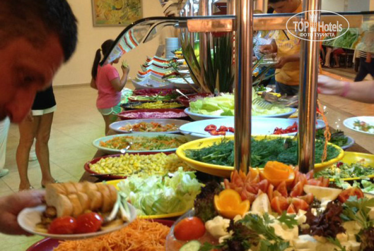 Далее обед - и снова приятное удивление после отрицательных отзывов, о том что кому то нечего было кушать в отеле - полнейшее разнообразие - и овощи и фрукты, мясо, разнообразные гарниры и соусы, выпечка на любой вкус, диетический и детский столы.