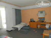 Мы приехали между 13.00 и 14.00. Разместили сразу. Планировался дабл со Standard Inland View. Номер дали №331, 3 этаж, просторный и чистый с балконом. Из мебели 3 кровати + раскладушка, пата тумбочек, комод, кресло, ЭЛТ телевизор – их процессе нашего проживания заменили на ЖКИ, кондиционер, 2 шкафа, на балконе столик и 3 стула. Ванна приличная, сантехника не старая, все функционировало, полотенца и белье свежие, белые, комплекты мыла/шампуни были. Сейф/холодильник есть, но не использовали. Переходник для розетки в залог 5Е. Маленький совет будущим отдыхающим: у отеля нет Standard Sea View - не переплачивайте. Выселялись мы в 7.30. Отъезд был в 8.30. Успели позавтракать. Место хранения багажа в это время – неохраняемая и не закрываемая комнатка. Это смутило, но ничего не случилось. Номера при выселении не проверяются, со слов девочек на рецепшен.