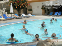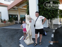 Отель состоит из 3-х этажного корпуса. Территория небольшая, использована максимально эффективно. Кругом цветы, зелень, все цветет. Есть элементы греческого декора: статуи, колонны, картины и т.д. Назвать отель обшарпанным нельзя. Все регулярно подновляется, видна хозяйская рука. Основной бассейн большой, с разными глубинами, места всем хватало, вода в нем хорошо прогревается, но без излишества. Детский бассейн с грибком мелкий и очень теплый. Купаться можно практически круглые сутки, но ночью вода сильнее пахнет хлоркой , чистят бассейны утром. Речки и водопадики, которые находятся на уровне повыше - точно требуют ремонта, хотя издалека красивые.(Там в объявлении, в принципе, так и написано). Лежаков всегда всем хватало, пляжное полотенце можно взять на рецепшен под залог 5Е.