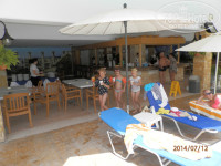 Отель расположен на окраине города Пафос. Дорога от аэропорта г.Ларнака с заездами по дороге в другие отели заняла около 1,5 часа. Автобусы удобные, хорошо кондиционированные. Вода в автобусе 2Е за поллитра. Место было бы тихое и спокойное, если бы не строительные работы, которые ведутся рядом. Оговорюсь, в самом отеле негативных эффектов от этой стройки не наблюдалось. Направо от отеля в десяти минутах спокойной ходьбы супермаркет LIDL. Цены умеренные, к примеру 6 бутылок воды по 1,5л стоили 1,68Е, местная водка Зевания 0,5л около 8Е, Командория 0,75л около 11Е, другие кипрские вина 3-6Е, немецкая водка около 1,5-3Е, килограмм свинины около 4Е, недорогое оливковое масло тоже имело место быть. Банкомат находится минутах в 20-ти ходьбы налево от отеля по левой стороне улицы по ходу движения.
