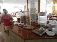 Обед проходил в баре у бассейна. Практически всегда были картошка в 1-2 ипостасях, макароны, рис, бобовые, 1 вид рыбы, 2-3 вида мяса, несколько салатов, 1 суп, фрукты, мороженое. Напитки – в Pool баре: 3-4 вида вина (сухое белое- зачет, остальные не очень), 2 вида пива (Карлсберг- зачет, Keo- кисловатое), весь список коктейлей и алкогольных напитков. Мороженое есть у бассейна с приблизительно с 11 до 18 самовынос :).