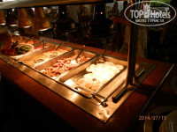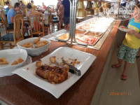 Ужин наиболее богат. 3-4 гарнира, как правило 2 блюда из морепродуктов (были замечены мидии, осьминоги, рыба, креветки, кальмары), суп, несколько десертов, фрукты 2-3 вида и ОЧЕНЬ много разнообразного мяса в различных исполнениях (свинина, говядина, баранина). Случались блюда от шеф-повара –особенно запомнилась говядина со своим неповторимым вкусом. Вина 3 вида из бочки, пиво и коктейли из бара, автомат с соками, автомат с колами/спрайтами, фантами и т.д.