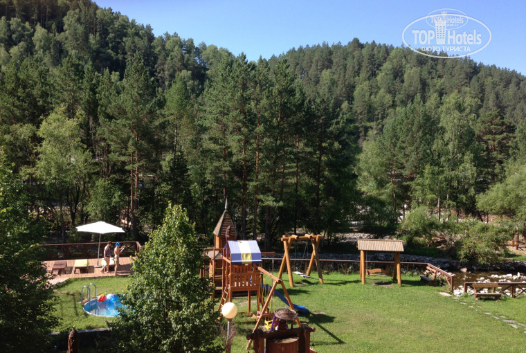 Территория хорошая. Есть детская площадка, бассейн, лежаки, лавочки. На момент нашего пребывания в Гоном Алтае шли восстановительные работы после страшнейшего наводнения. Территорию подмыло, точнее, остров напротив отеля. Мостик восстанавливали. Перешли на остров - там тоже потихоньку все приходит в норму.