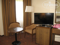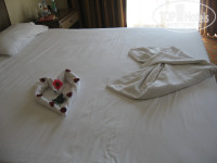 В отель мы приехали в середине дня и нам сначала предложили пообедать, после этого вручили карточку от номера. Носильщика ждать не стали: с дороги устали и хотелось поскорее попасть в номер, отдохнуть и привести себя в порядок. Поселились согласно ваучеру, доплачивать за вид на море не стали и не пожалели! Наши окна выходили на парк, но море тоже было видно. Шум от дороги было слышно, но нас это не напрягало. Номер очень чистый, все в рабочем состоянии, телевизор - плазма, имеется 1 русский канал. Однако не всем так повезло - была неоднократно свидетелем скандалов на ресепшн по поводу заселения. Много негативных отзывов было и при личном общении с другими отдыхающими. Поставила "5" исходя из личного опыта.