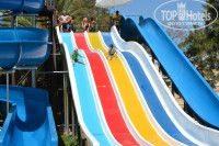 Отель компактно обустроен, очень зелёная территория, с 10 утра до 5 вечера гуляют павлины. Горки для детей под теном, хотя взрослые горки не так уж и экстремальны, мои мальчишки любили спускаться на них! Аквапарк работал по времени с 10-12, 14-17. Возле бассейнов, да и вообще немцев было около 80%, на море они не ходили))