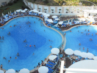 Территория отель не плохая бассейны чистые / впервые увидела что в бассейнах люди плавают до 23-00/, аква-парк отличный, очень красивый панорамный лифт на море. Море глубина сразу 3 метра, кто не умеет плавать левее от отеля 20 минут хотьбы и вы на галечно-песчаном пляже.