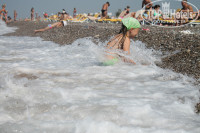 Море волновалось весь наш отдых, но мы ходили на море. Море чистейшее, даже при таком волнении была прозрачная водичка.Опять же есть с чем сравнить. Пляж большой, песок чистый, тяжело сходить в море по мелкой гальке,но есть хорошее решение- это тапочки-кораллки. Везде купите.