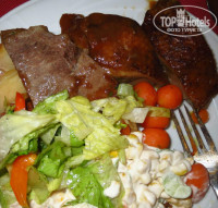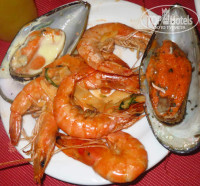 Еда! О!!! Всё-таки думаю,это именно заслуга отеля. И даже дело не в морепродуктах,которых в числе прочего подают в ресторане,а в том,что приготовлено всё с душой и очень профессионально. Еда ну оооочень вкусная и разнообразная. Как будто каждый день ходишь к кому-то на День рождения:))) Каре ягнёнка,сёмга под крабовым соусом,жареные осьминожки,шашлыки из свинины,пончики с ананасом,и многое другое - это всё так прекрасно:)) Многие блюда готовятся на открытом огне,но всё это волшебство скрыто от отдыхающих. Офицанты очень вежливы,внимательны.Многие улыбаются всё время.Даже когда на них никто не смотрит:))) Напитки,конечно разбавляют.Ну а в какой четвёрке этого не делают?:)) В ресторане меньше разбавлены,чем в баре.Вкусные соки, не юпи.
