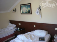 Ну, начнем. Т.к наш самолет опоздал то прилетели мы в обед, так что заселили нас сразу после того как Ольга провела нас, с экскурсией, по отелю и того как мы покушали. Номер был на 5-ом этаже с видом на горы и второй корпус, мне кажется, что самое лучшее расположение окон с этой стороны: тихо, прекрасный вид, а если на 5-ом то вообще можно посидеть на перилах балкона свешав ножки вниз. Не знаю почему пишут что убирают не каждый день, но у нас убирали каждый иногда даже мы сами просили не убирать. Полотенца меняли когда попросишь, ну я просила только 1 раз за 2 недели ( я одна пользовалась всеми 4-мя полотенцами, т.к друг привез свое), так что не знаю, мб если будешь просить чаще то не дадут, но зачем чаще то?! вы же свое тело вытираете, не сморкаетесь, для ног там есть отдельное. Я бы и не меняла, но просто я ходила с ними на пляж, как оказалось так нельзя было делать =)) Гель и шампунь тоже доливали как попросишь, но после того как один раз попросила, горничная сама стала их пополнять. Еда, наверно да, не для гурманов, но для меня было много зелени чему я была рада, салатики я брать не решалась, так как майонез и жара как то не совместимы, можно догадаться что если даже он был свежим и его сделали сегодня, не факт что взяв его вы не схватите отравление. Ходила на массаж, мне понравилось, спасибо Хасану , размял мои костяшки, но моему другу было не очень, ему хотелось жестче, для девушек будет нормально. Да, это отель для тихого, размеренного времяпрепровождение. Номер чистый, хороший, для 2-х человек нормальный. Для тех кто любит на отдыхе смотреть тв скажу что русских каналов 4, предпочитала смотреть турецкие, наши показывали плохо и то что там показывали мне не нравилось, но я же не тв приехала смотреть. Еще мне показалось странным отсутствие простыни как средства для укрывания, там были только покрывала, что то мне не очень понравилось им укрываться, жесткое оно для этого дела. Думаю такие люди туда и едут, потому что аниматорам на дискотеку или в волейбол, или в водное поло, или конкурсы трудно собрать народ, поэтому на анимацию жаловаться не буду. Но при выборе отеля была сразу предупреждена что анимация там никакая, ехала ради гор =))) Персонал дружелюбный, ну есть 2 царевны несмеяны на ресепшене, но думаю это вина, опят таки, людей. Наверно им надоела невнимательность и неблагодарность что они теперь ведут себя так. Приходят не здороваются, это я на своем примере, с утра, не выспавшись, подошла и ни здрасте ничего и сразу, давай ланч бокс. Думаю они поэтому такие буки. Что я поняла в этом отеле так это приветливый настрой и улыбка творит чудеса и вам даже в 9 утра нальют пепси, хотя all начинается с 10. Но по разговорам вроде были проблемы с главным барменом, не любит он много давать в одни руки =)) Но я с этим не сталкивалась. Мне понравилось!!! Когда о5 захочу тишины и размеренности обязательно вернусь. Но думаю если ездить с Омаром и Леной на дискотеки в Кемер вечерами то будет достаточно веселья. Меня, после пенной вечеринки, не отпускало еще 2 недели по приезду в Россию. Помните, главное позитивный настрой!!!