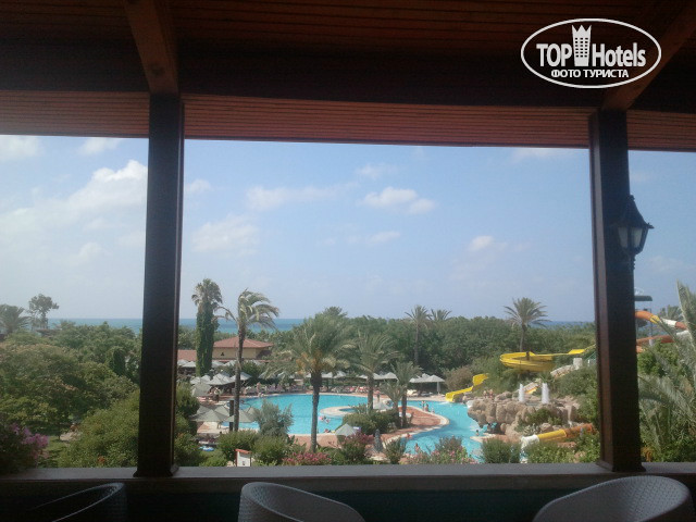 Про размещение. Нас разместили в корпусе D, это отдельно стоящее здание 5 этажей. Мы как раз проживали на 5 этаже. И ни разу проблем с лифтом (а их там 2) не было. Вид из номера у нас был на море и на соседний отель Мейджик Лайф. Нисколько не жалеем о таком размещении, т.к. жить в главном корпусе я бы не хотела. Особенно левое крыло - оно над рестораном, а под окнами правого крыла как раз кафе Фиеста. Но т.к. мы там не проживали объективно судить не могу здорово это или нет. Еще хочу отдельно поблагодарить отель за бонусы. Первый бонус - нас в номере ждала тарелка с фруктами и халаты с тапочками(приятно). А второй бонус- так вышло,что День рождения совпал с отдыхом и такой приятный презент от отеля большая тарелка с фруктами и бутылка красного вина (и конверт с поздравлением). Ведь приятно, согласитесь...