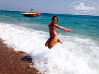 Что касается питания, то обедали мы в основном на пляже: обалденная шаверма, гезлиме и самые сладкие арбузы. Изобилие фруктов: виноград красный и зеленый, сливы, нектарины, персики, яблоки, арбузы и дыни. Причем бар на пляже работает и обед накрыт с 12 до 16.00, то есть почти весь день. Пила я в основном сухое вино (кстати красное мне понравилось больше, чем розовое), пиво не пробовала, хороший айран. Свежевыжатые соки на завтрак за денежку. Понравились ужины, столы красиво накрывались, всегда чистые скатерти, вокруг очень красиво: прудики, фонтанчики, живая музыка. Давали шашлычок, понравился томатный супчик, на десерт пахлава. В субботу дают бесплатное мороженое. Ассортимент блюд не скажу что шикарный, но выбрать есть из чего. Самое главное, что недомоганий с желудком у нас не было. На ужин мы обычно приходили к самому началу, так что всегда выбирали понравившийся столик без проблем, официанты за ужином подходят и спрашивают, какие напитки принести, вполне достойное обслуживание. Роя мух, кстати, не заметили. Да, чуть не забыла, в 17-00 у бассейна пекут очень вкусные вафли (или гофры, не знаю как правильно их назвать), лучше очередь занимать заранее)). Один раз бельгийцы чуть не подрались из-за места в очереди.
