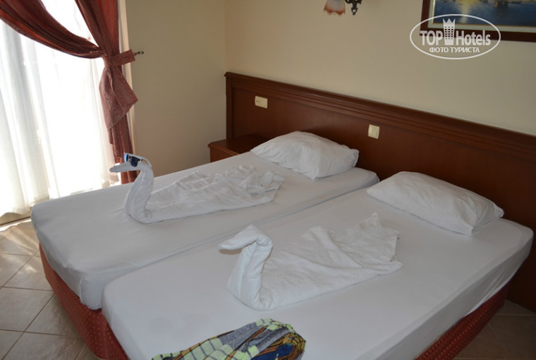 Отправил нас туда ТезТур. В номер заселили в течении пяти минут,не смотря на то что время было 11.00,Оля сразу предложила записаться нам хамам(50$ за двоих), убирались в номере каждый день,полотенца и простыни не меняли пока мы не попросили,одно полотенце было рваное, заселили в номер с видом на стену,попросили поменять(не бесплатно)на пятый день получилось переехать в номер с видом на горы и море. Кондиционер в первом номере работал отлично,в другом хуже.Питание самое слабое место этого отеля,перебивался макаронами с соевой колбасой,сверху накидывал зелени чтоб желудок не бунтовал,мяса не было,была лишь курица,зато арбуз был постоянно,но продукты не моют,это факт!Анимация никакущая. До моря 5 минут пешком по прямой. Пляж вроде чистый, лежаков хватало всем. Wifi платный на 10 дней 15$.Отель не тянет на 4 звезды. Второй раз туда бы не поехал.