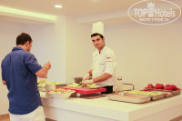 Насчет пляжа: то, что туда нужно ездить на автобусе минут 5-6, нас нисколько не утомляло. Лишь один раз за 10 дней пребывания ждали его 15 минут. А так у нас не было проблем. Обычно в половине 11 мы уезжали на пляж, возвращались в 3-4 дня. Обедали там же. Конечно, там не такое разнообразие как в основном ресторане, но нам хватало.