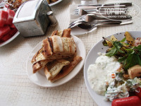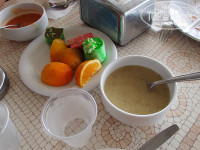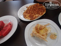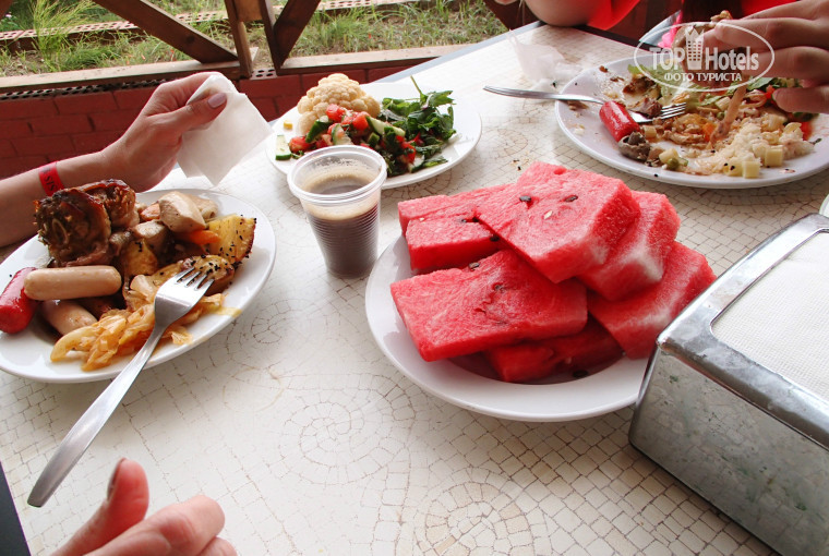 Только утром есть молоко и разные хлопья для завтрака, утром есть вкусные булочки с оливками, маслинами, творогом или кунжутом. Днем дают апельсины и на ужин бывает арбуз и виноград.