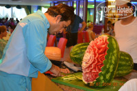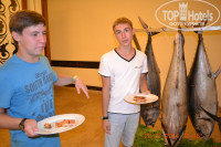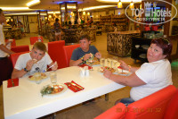Еда: выбор большой, из мяса- баранина, курица и тунец (ну, потому что на мясо похож!).Рыба – селёдка, скумбрия и местная какая-то. Даже для тех кто на диете есть что выбрать – всякие варёные овощи ,обезжиренное молоко , супчики(невкусные).Море арбузов вкусных, персики, сливы, груши(прикольные такие, даже не сразу поняли что это!),яблоки и всё. А , бананы маленькие – сладкие и виноград ! Есть детское кафе – маленькие столы и детское меню ,что там не знаю.