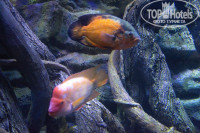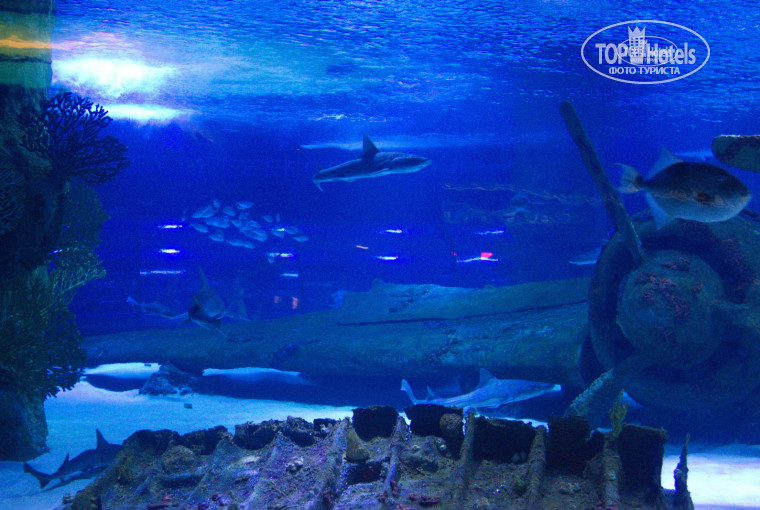 Встреча с отельным гидом на следующий после приезда день. Гид по имени Элина - очень доброжелательная и квалифицированная. Всё рассказала чётко, ничего не навязывала. Взяли поездку в аквариум в Анталье(130 USD на 2 взрослых с ребёнком) и фришную поездку за текстилем и сувенирами. Аквариум очень понравился, хотя фотографировать там можно только без вспышки и даже зеркалка (берите светосильную оптику) не вытянула хороших снимков. На входе вас снимут на зелёном хромаке профессиональные фотографы, постарайтесь сделать удивленное и чуть испуганное лицо, что на выходе иметь возможность купить интересные отфотошопленные фотографии (6 штук и магнит за 29 USD ). Сувенирный магазин в аквариуме дороговат.