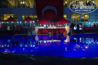 В субботу устраивают турецкую ночь. Всё кругом в флагах, персонал в футболках с национальными символами. Под громкую музыку и фейерверк выносят торт из мороженного и бисквита и дальше приглашенные артисты развлекают постояльцев номерами художественной самодеятельности. В принципе, смотрибельно. Также различные торговцы продают прямо вокруг основного бассейна свой товар.