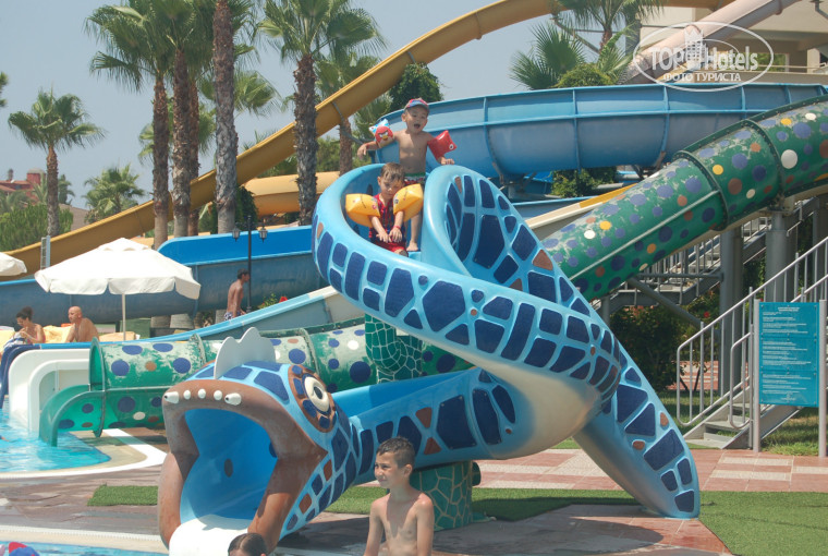 3) территория отеля настолько большая, что мы только с 3 дня дошли до аквапарка. Кругом зелень, цветы (оляндра, деревья фикуса, деревья с мандаринами…), все ухоженно и красиво. Карусели бесплатные работали 16.00-18.30. Есть мини-клуб, но мы так и не дошли до него, не хватило нам неделя отдыха побывать во все местах на территории отеля. На территории есть даже красивый Кошкин дом и конечно и кошки гуляют )))