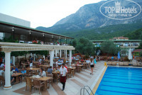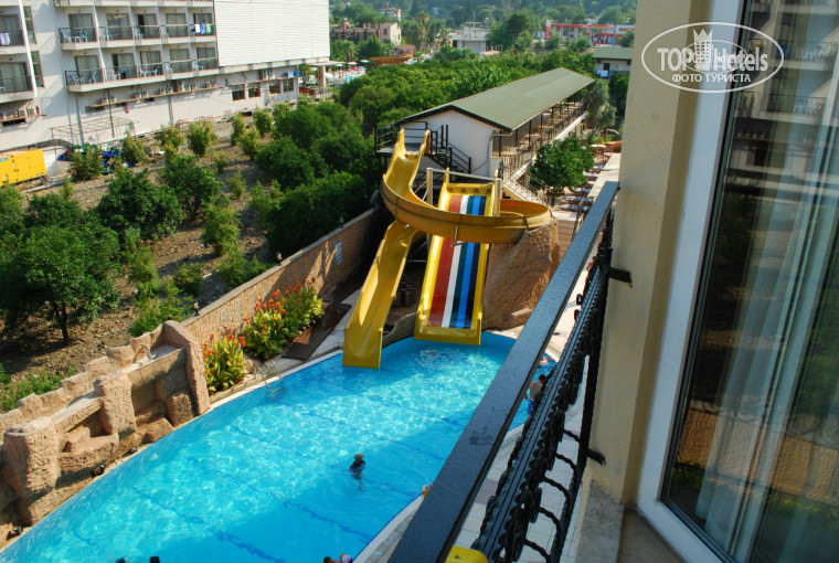 Общее впечатление об отдыхе хорошее. Когда мы с мужем выбирали отель, нам предложили номер эконом. О нем было написано только то, что он без балкона. Но, когда мы попали в этот номер, то были в шоке: он находился в подвале, окно очень узенькое под потолком, запах сырости и сырые стены! Пришлось заплатить 50 долларов, чтобы попасть в стандарт. Сейф платный, 2 доллара сутки. Питанием наша семья осталась очень довольна, несмотря на то, что свинину и говядину не давали, было достаточно курицы, рыбы и сосисок. Очень понравились тушеные овощи и восточные сладости. Дети с удовольствием кушали гамбургеры перед обедом и после дневного сна мороженное. На полдник мы не разу не сходили за 10 дней и даже не знаем, чем там кормили, так как еды и так было больше чем достаточно! Очень понравилось шампанское со льдом, его можно было пить в течении всего дня. Вина сухие, кислые, так что они на любителя. Природа там изумительная: огромные горы, сосны, пальмы, оливковые, гранатовые и апельсиновые деревья! Территория отеля очень чистенькая, есть прудик с цветными рыбками, два взрослых бассейна и один детский. Так же на территории есть мини клуб для детей, в котором должны работать аниматоры. Но к сожалению днем такая работа с детьми не проводилась! Только вечером была детская дискотека, а после нее развлечения для взрослых.