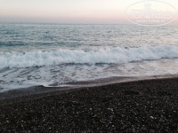 Подземный переход ( совсем не длинный) к морю удивил чистотой и цветами в горшках. Пляж галечно-песчаный, но в местах, где лежаки под крышей, полностью песочек, и там малым деткам просто рай. Кстати, пляжные полотенца бесплатно, а на лежаках есть мягкие матрацы. Урны на пляже через каждые 15 метров, за чистотой пристально следят, поэтому состояние пляжа просто супер! Есть пластиковый пирс, с которого можно нырять, загорать там и качаться на волнах! Море чистейшее, нет медуз и водорослей.