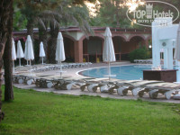 Прибыли в отель около 4 часов утра, зарегистрировались и стали ждать заселения. Нас сразу предупредили, что мы можем пользоваться всеми услугами отеля, поэтому после завтрака обследовали территорию, поиграли в пинг-понг, выпили прохладные коктейли в баре и пошли обследовать территорию вокруг отеля. Мне очень понравился поселок Goynuk, чистый, компактный, много маленьких магазинчиков с сувенирами, текстилем, кожей и сладостями. На улице продают туры на любые экскурсии и посещение хаммама. Хаммам купили на улице, стандартный пакет 15 S с человека, находится в самом поселке, новый, обслуживание на высоте, на машине отвезли и привезли к отелю. Заселили нас около 13 часов, в бунгало, номер на 1 этаже. Начитавшись отзывов я была готова ко всем "ужасам" бунгального размещения, так что не была шокирована ни мостиком через дорогу, ни размером номера, ни мебелью. Эконом вариант, без претензий на роскошь, все работало, тень от деревьев дала возможность практически не включать кондиционер и не подхватить простуду во время отдыха). В номере была слышна музыка из соседнего отеля Larisa Vista, интересно было, что за ежедневный "Праздник" творится за ограждением, но почитав отзывы от этом отеле поняла, что туристам там не до веселья(.