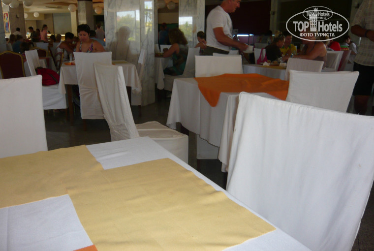 СЕРВИС. В ресторане сервиса никакого, персонала не хватает, так как народу много, приходилось убирать за собой тарелки. В номерах убирались каждый день, кроме воскресенья, меняли постельное белье, по-моему через три дня, полотенца тоже меняли. Полотенец пляжных нет, это практически во всех трехзвездочных отелях так. Но фены в тройках бывают, почему здесь нет, не знаю.