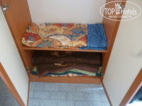 Номер: очень маленький (и там они все такие, кроме номера люкс наверное) 3на3 метра и там умудрились поставить три кровати ,шкаф, тумбочку, столик с зеркалом и телевизор (а у кого-то было и четыре кровати им все равно, что по нормативам двух местный).Туалет: душевая кабинка маленькая, будь я чуть потолще и не влезла. Вода горячая бывает только днем(да и откуда ей взяться, бочек у них мало). Вода постоянно фыркает и брызгает. . Балкон маленький(в общем все миниатюрное) Если поедете - берите веревку ,чтобы было где сушить. Ах да, именно в комнате работала только одна лампочка и она была очень тусклая, потому что на 20вват. По коридору когда идешь до номера лампочки с датчиком движения и быстро отключаются, некоторые не работают, т.к.все экономно. По телевизору один русский канал «планета», нам хватало.