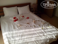 Приехали мы в отель в 6 утра. Я сразу положила в паспорт 20 $ и просила дать хотя бы один номер сразу (мы бронировали 2 стандартных River Room), так как родители пожилые и очень устали с дороги, деньги мне вернули, и сказали что к сожалению номеров свободных пока нет. Нам одели браслеты багаж мы положили камеру хранения, и пошли осматривать отель. Плавки и купальники мы положили в ручную кладь (спасибо предыдущим отзывам, я предполагала что сразу не заселят). Переодеться Вы сможете либо в туалете на ресепшн, либо в багажной комнате, либо в туалете у Релакс бассейна, куда мы и отправились сразу после завтрака (опять же спасибо предыдущим отзывам, из них я усвоила информацию о том у Релакс бассейна который находится у реки более спокойное место, а покой это то, что было нам нужно после 8 часовой дороги). Найти Релакс бассейн Вы сможете по карте, которую Вам выдадут на ресепшн по приезду. Сначала я переживала, что освободившиеся номера отдадут тем ожидающим туристам, которые в данный момент будут находится на ресепшн, о несколько раз бегала от бассейна к ресепшн с вопросом не освободились-ли номера, но мне отвечали что номера еще не готовы. В конце-концов мне надоела беготня, у бассейна открылся бар, и выпив холодного пива Туборг и перекусив там же картошкой фри и котлетками я поняла, что жизнь налаживается... К 13-00 я в очередной раз пошла на ресепшн, узнать на счет номера, и каково же было моё удивление, когда меня спросили : не устроит ли меня вместо 2-х стандартных номеров один большой сьют, и предложили посмотреть 2 сьюта на выбор, на одном из них мы остановились. Мы жили в номере Jasmine Senior Suite С18-2, расположен он рядом с основным рестораном и главным бассейном с горками. В номере: 2 спальни; 2 ванные комнаты с санузлами в каждой, в одной ванной комнате есть стиральная машина; плюс большая гостиная с большим диваном и телевизором; кухня со всеми кухонными принадлежностями, включая холодильник и посудомоечную посуду; также у номера две собственные террасы, на одной из стояли 2 собственных лежака, и после обеда так приятно было повалятся на них.