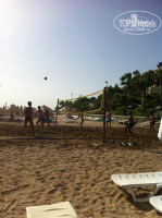 На пляже есть волейбольная площадка, а также развлечения в виде катания на банане, таблетке, дельтаплане, парашюте.