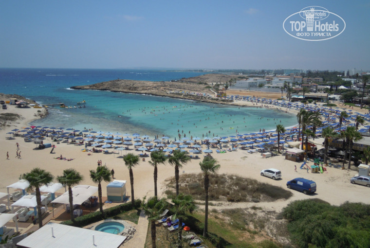 1. Расположение. Отель находится прямо на берегу небольшой бухты, из всех номеров прямой или боковой вид на море. Довольно большой бассейн, вокруг которого много лежаков, от бассейна до моря 50 метров (на самом пляже лежаки платные). Вдоль берега в обе стороны идет вымощенная камнем дорожка, по которой можно дойти до пляжа Nissi Beach (на мой взгляд он ничем особенным не выделяется). Метрах в ста есть супермаркет, где можно купить все необходимое (вода 6*1.5 = 3 евро, 12*0.5 = 2.5 евро). До Nissi Avenue (там все магазины и рестораны) 5 минут пешком, до парка аттракционов пешком минут 25.