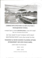 «OLIVIA» ресторане, «RIVER» баре , «SNACK» баре 10:00 до 24:00 , «BEACH» (пляж) баре с 10:00 до 18:00.