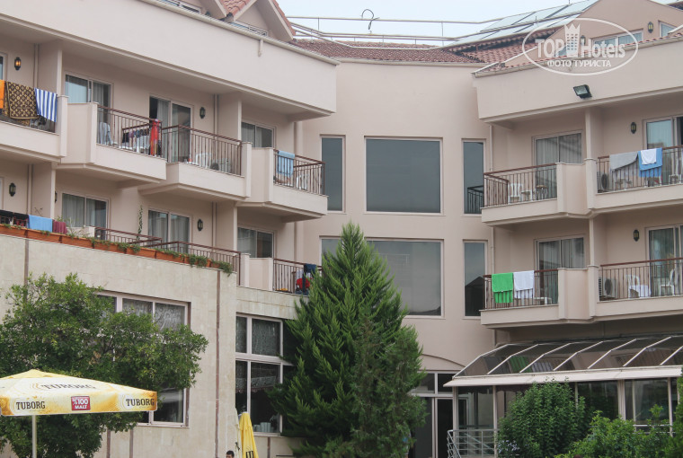 Отдыхала в этом отеле с подругой с 31.07. по 11.08. Отель хороший, номера чистые, территория отеля ухоженная. Питание отличное, есть даже полдники, что очень порадовало. На выбор мясо, курица, рыбка, множество сладостей, из фруктов были арбузы, дыни, персики. Из бесплатных напитков пиво, вино белое и красное, виски-кола, ром-кола. По вечерам у бассейна готовили мясо, блинчики. Блинчики с шоколадом были нереально вкусные. Изначально номер дали, который сразу нас не устроил, не понравилось месторасположение - вид на улицу, первый этаж и как проходной двор. (заходишь в отель и сразу наш номер). Дали 20 $ и нам сразу выдали ключи от хорошего номера с видом на бассейн. Вообще номера в этом отеле есть на улицу, на мусорку и на футбольное поле. Единственный хороший вариант - это с видом на бассейн. Море чистое, т.к. галька, идти до него 2 мин. На пляже есть бар. В общем и целом отель хороший. Отдельное спасибо поварам и обслуживающему персоналу. Отель находится на одной улице с пятизвездниками. До променада совсем недалеко идти. В отеле играет музыка с утра и до 00.00, так что семьям с детьми не советую его. Для отдыха с друзьями, второй половинкой это идеальный вариант)