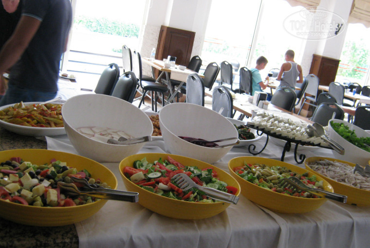 Отель хороший, для семейного отдыха, персонал 2014 года отличный, повара и официанты чистоплотные и вежливые. Официантам отдельное СПАСИБО!!!!!!!! Бассейн чистый, море близко, животы не болели от пищи. Фрукты - арбузы и дыни, мясо - курица и соевое. Салатов много, утром - омлеты или блины пекут при тебе на террасе, к кухне нет претензий. Уборка в номерах ежедневно, единственный недостаток - в коридорах старый замусоленный ковролин.... а так, отдых удался. Тем, кто любит тусовку, не сюда, отель ДЛЯ СЕМЕЙНОГО ОТДЫХА.