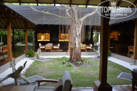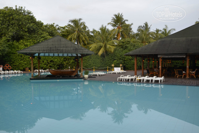 Вся общественная жизнь сосредоточена в северо-восточной части острова – там рядом друг с другом находится ресепшн, бар (большой шатер, где все сидят, а вечером музыка и танцы), ресторан, фитнес-клуб и Спа. Интернет есть на ресепшн и в баре. Судя по количеству номеров, на острове одновременно могут находиться 500-600 туристов, они все рассеиваются по острову, поэтому нет толпы ни в парке, ни на пляже. Впечатление, что народа очень мало, что приятно.