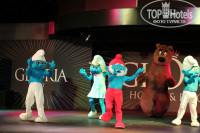 Детская анимация. Наши детки не очень любят находиться в миниклубе, так как в течении 9 месяцев в году у себя посещаем различные развивашки и детский сад и различные студии. Но в детской спартакиаде принимали активное участие!!! Детские аниматоры всегда идут на встречу и всегда играют с детьми. Во время нашего отдыха три раза было детское шоу - ростовые куклы Смурфики, Микки Маус и друзья, которые сами играли на различных музыкальных инструментах. Один раз в неделю привозные батуты, фигурки из шариков и бешенная овечка:))). Мой сын на ней удержался - оседлал её!!!