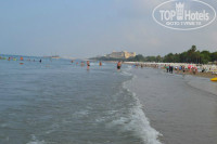 Море совсем рядом. На пляж приходили с самого утра, поэтому лежаков всегда было достаточно. Конечно хотелось чтобы на 2 отеля было места побольше. Пляж хороший, но очень много народа там всегда. Вход в море пологий, мелкий песочек.