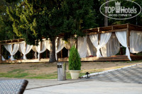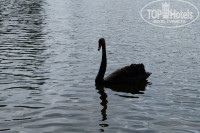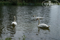 На территории есть еще собственный пруд с лебедями. В котором так же можно искупаться и позагорать на очень удобных шезлонгах. Или отдохнуть вечером за столиками.