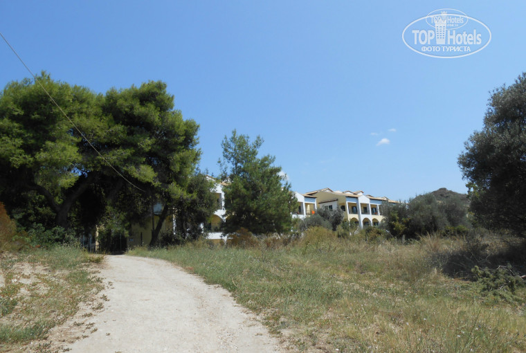 Слева на пляже- место тусовки греческой молодежи бар Молос. В пятницу приезжает молодежь даже из Салоников, там очень многолюдно и проходит дискотека по вечерам в выходные. Но в 23 вечера музыка выключается, и гости Lesse могут спать спокойно. Вот только тропинка к морю совсем сельская, не курортная. Про нее писали в отзывах еще в 2005-2006 годах. Она похоже не меняется. Но зато удобно и быстро можно дойти до моря. Даже просто в купальнике. Вот только за пределами отеля мусор плохо убирается. Поговорили с греками- сетуют на кризис и дорогой бензин.