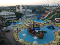 Ездил в отель с сыном. По приезду утром ждали по наступит время заселения, (хотя немцев, которые приехали после нас заселили сразу) затем 12-00 дали ключи от номера на втором этаже, причем ехали мы на техническом лифте без дверей, оказалось что номер был в месте, где проживал персонал отеля, высота потолка 2 метра, на балконе расположены кондиционеры, и он выходил на крышу, фойе здания, меня это смутило и я пошел просить другой номер и ... Приходите завтра, сейчас отель переполнен и свободных номеров нет. Хотя повторюсь, что немцы и другие не русские получали номера сразу хорошие, ах да совсем забыл, предложили номер с джакузи за 100 баксов, я сходил посмотрел, и оказалось, что окна номера выходят на пустырь с кучей мусора, а "джакузи" находится в самом жилом помещении, если бы видок был на море (это было невозможно в виду отдаленности отеля от берега) и я был не с маленьким ребенком, то чувство романтизма, я думаю взяло бы свое, но в реальности я посчитал, что это излишни и отказался. Судя поэтому , когда я пришел наследующий день просить обещанный номер, мне сказали... Приходите завтра. Не буду описывать, свои чувства и так понятно. Короче только на следующий день я получил замечательны номер с видом на бассейны и аквапарк. Отель совершенно новый и всем в нем было хорошо. Питание на пятерку множество ресторанов на любой вкус, сервис так себе (наверное осадок от заселения). Все внимания персонала было нацелено на интуристов. Русских 10%, немцев-50%, много украинцев, поляков и турков.