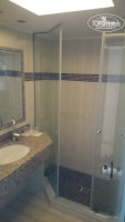 А вообще, волей случая, мы в этот отель ездим практически каждый год, несколько лет подряд. По мне, это отель эконом-класса. Ремонт в номерах производится годами и постепенно. Есть полный "совок" (на последнем этаже, вид на дорогу), и "совок" дальше некуда (маме взяли номер на одного - дали на втором этаже малюсенькую комнатушку с раскладным диваном до противоположной стены и телевизором у изголовья). А есть отремонтированные номера с видом на море в старом здании, там подсветки, цветы на стенах нарисованы...