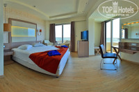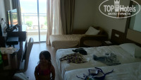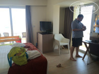 В отель нас завезли первыми, и тут началось,нам дали номер,мы заходим,и понимем,что как-то это совсем не делюкс,а стандарт с ремонтом. Находится в основном здании(а не в новом,как заявлено на сайте отеля),маленький номер,с душевой кабиной.Втроем еле развернуться. Выйдя из комнаты я встретила девушку и спросила,вы брали делюкс? она говорит-нет,мы брали стандарт,а нам дали делюкс с видом на море(вот это не обидно) Мы пошли на ресепшн,русскоговорящая девушка достала нам какую-то бумажку с их категориями номеров(которые они сами напечатали), и наш номер у них там стоит Deluxe sea view! Мы говорим,что это как бы не тот номер,который указан у вас на сайте,на что мне сказали-ну мало ли что там написано,У нас это делюкс,и вид на море!Я начала звонить в принимающую компанию,на что девочка мне ответила-ну у них это делюкс с видом на море? ну значит и не возникайте!Мы уже были очень злы,потому что все вокруг притворялись идиотами,которые не понимают в чем вообще состоит наша проблема.Потом приехала Людмила,это отельный гид. Она сначала тоже начала о том,что номера в новом здании нам продать не могли,и мало ли что на сайте,и т.д... Но,тем не мене,пошла узнавать,что и как. После этого началось движение,и нам сказали,что завтра переселят в другой номер.Хорошо,наступило завтра,говорят,номер готов, приходим,а там.... Боковой вид на море,и номер еще меньше,чем был до этого. Мы отказались от него,на что на ресепшене нам уже сказали,что номера в новом здании оказывается держут для тех,кто покупал через их сайт! На следующий день мы все же получили тот самый номер,в котором было два окна,большая площадь и джакузи! предлагали за 20 евро в сутки переселиться в сьют,но нам он был не нужен.