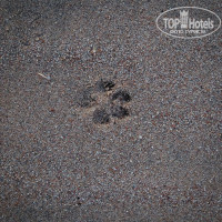 Как то с сестрой мы пошли встречать рассвет на пляж, кстати, с пляжа рассвет не виден. Виден только с балкона, но это потрясающе ( фотография прикреплена). Идём мы вниз по лесенке, никого не трогаем и тут пробегает зверь, похожа на рысь или лисицу, мы так и не поняли, но точно не кошка. Слишком уж огромная для кошки. Я смогла сфотографировать лапку на пляже.